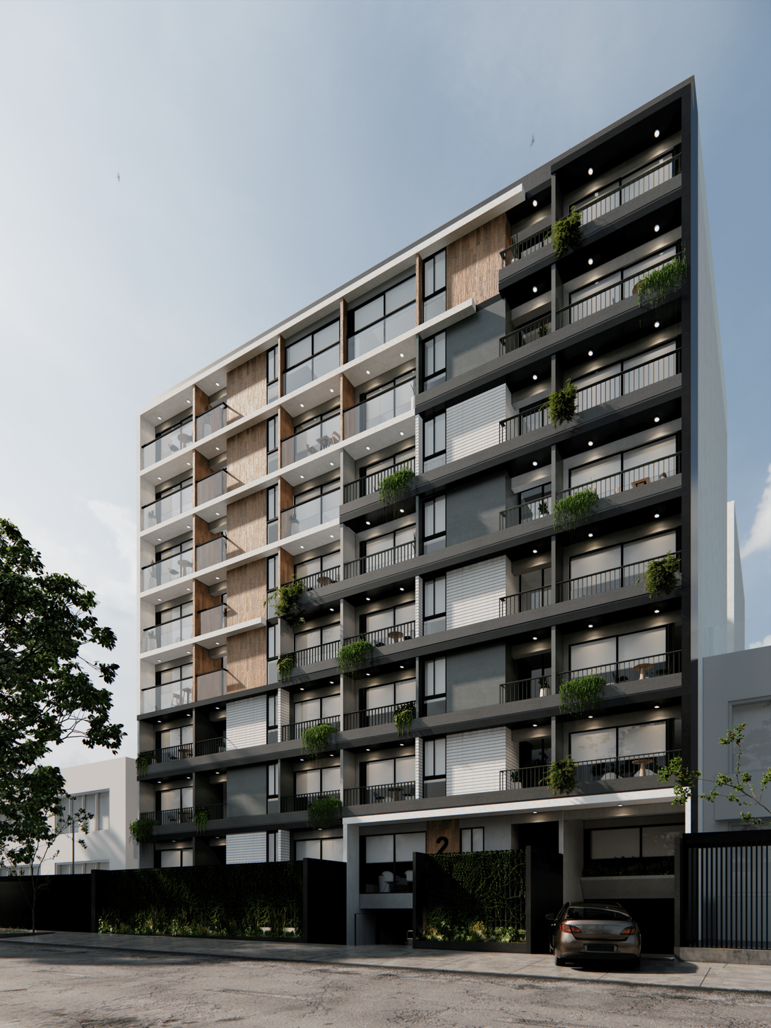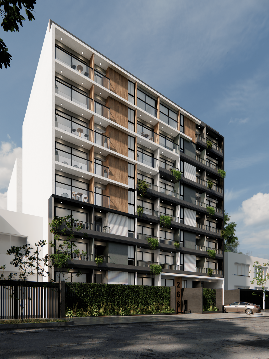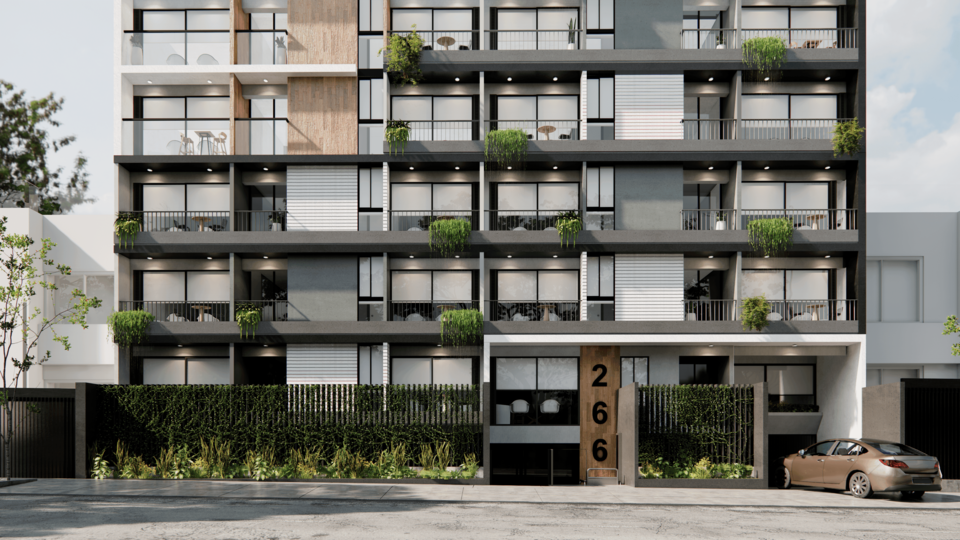 • 71 departamentos y estacionamientos para 57 autos, desarrollados en 08 pisos más azotea, 01 semisótano y 02 sótanos