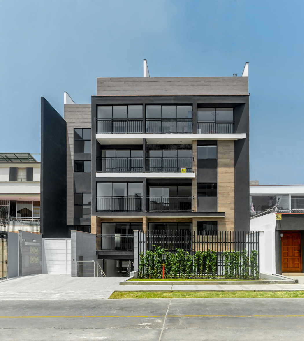 • 12 departamentos y estacionamientos para 28 autos, desarrollados en 04 pisos más azotea, 01 semisótano y 02 sótanos