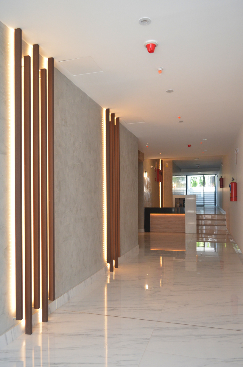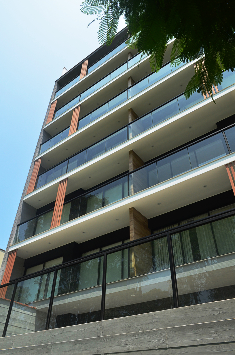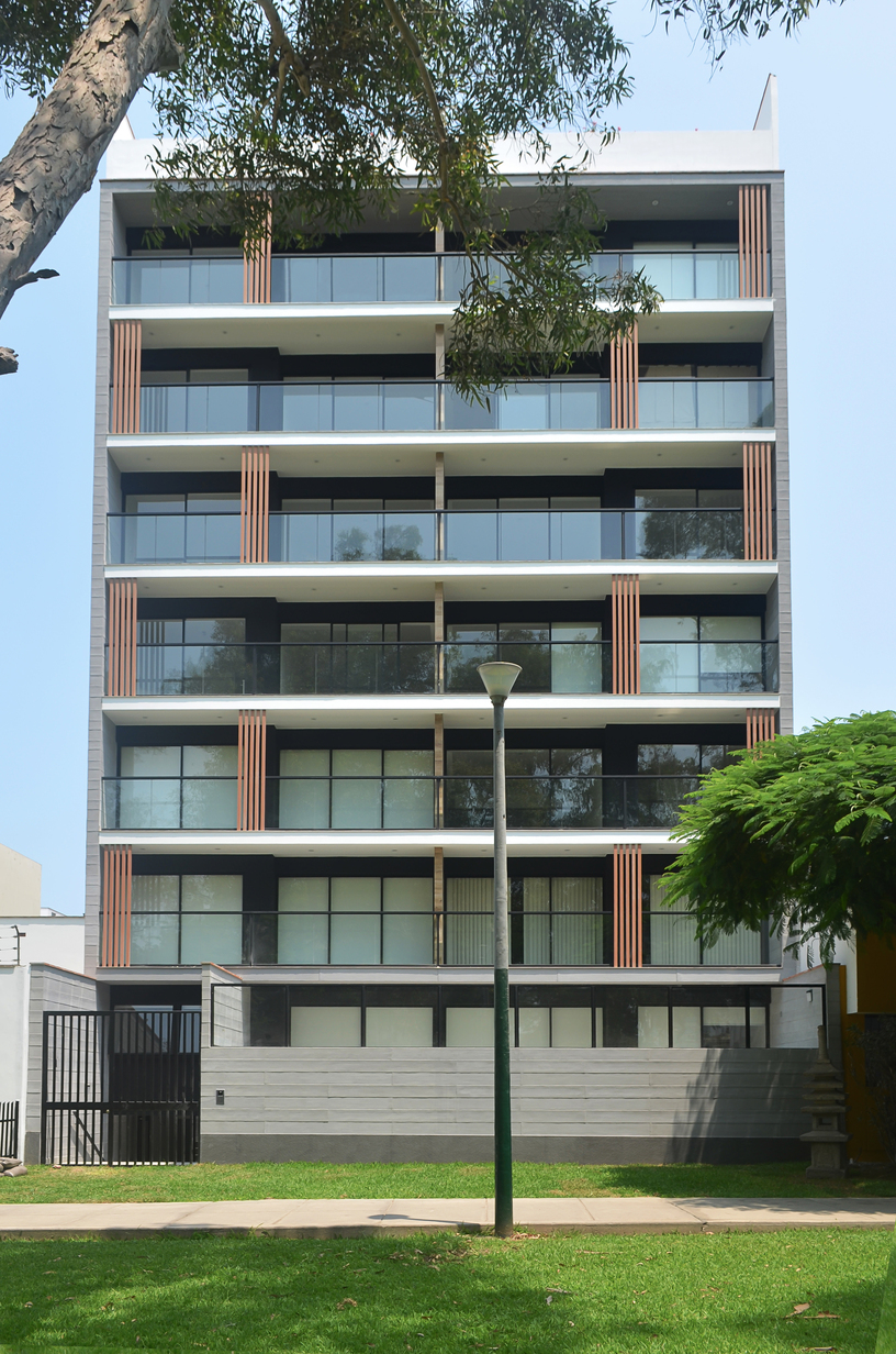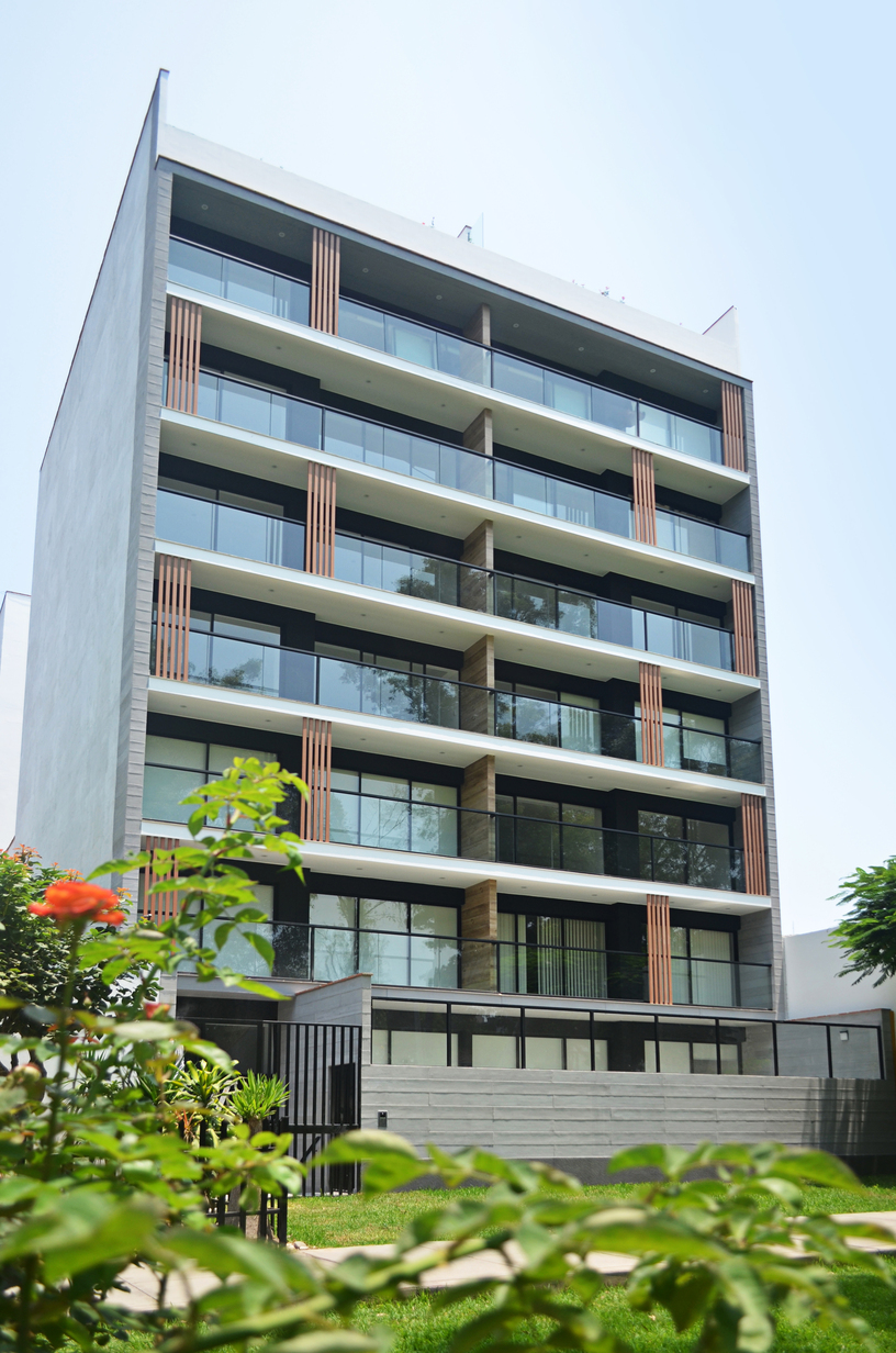 • 20 departamentos y estacionamientos para 40 autos, desarrollados en 07 pisos más azotea, 01 semisótano y 02 sótanos