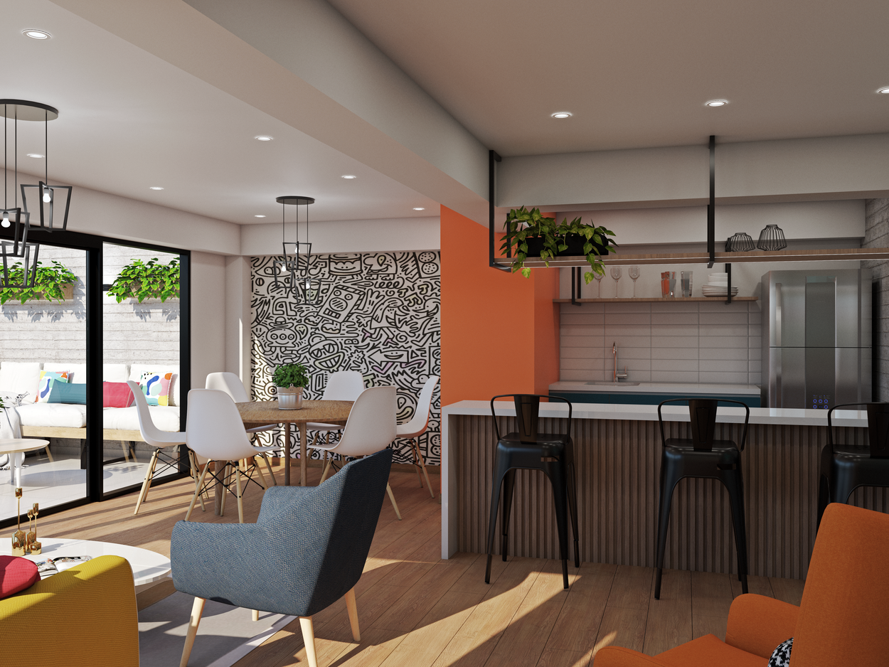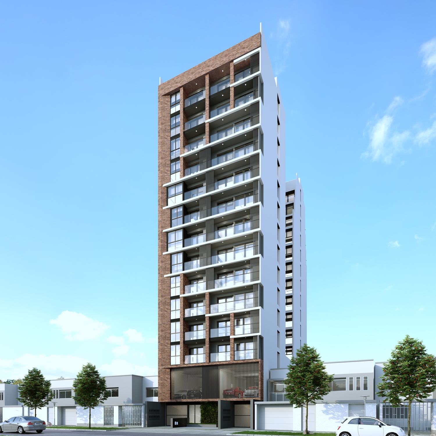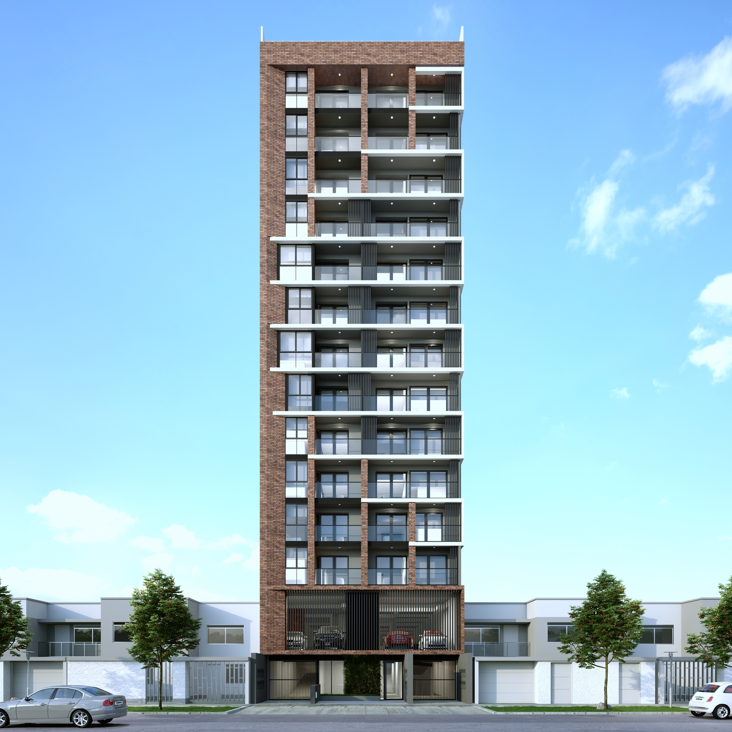 • 59 departamentos y estacionamientos para 27 autos, desarrollados en 14 pisos más azotea y 02 sótanos
