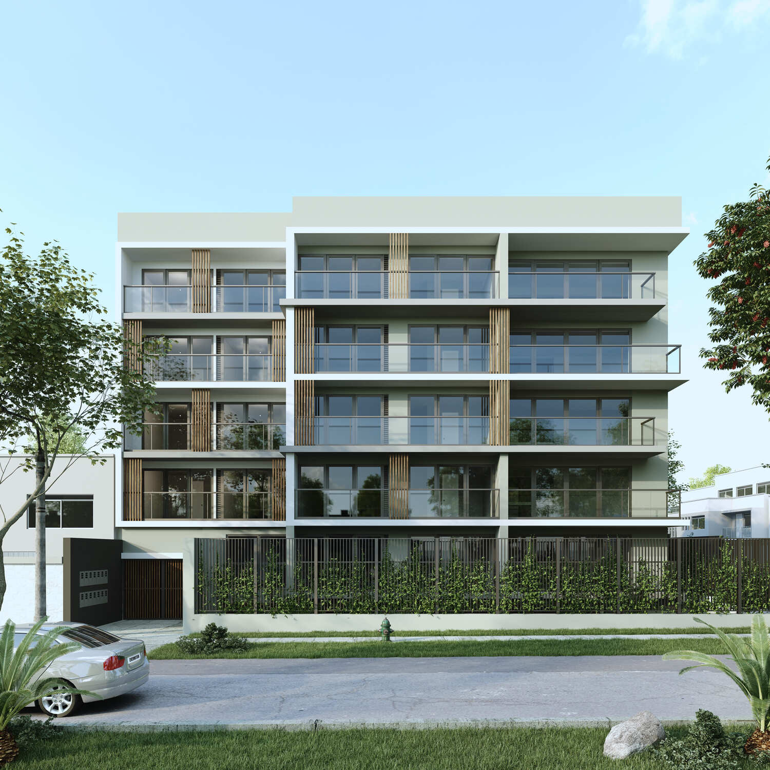• 23 departamentos y estacionamientos para 25 autos, desarrollados en 05 pisos más azotea, 01 semisótano y 02 sótanos